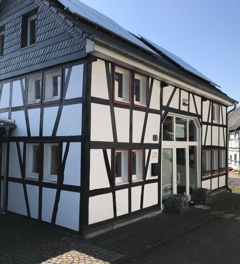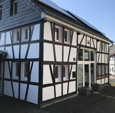 Unsere Praxis liegt in Lohmar, im Ortsteil Hohenrath, in zentraler Lage des Ortes. Die Beratung findet in einer charmanten Fachwerkscheune aus dem Jahr 1920 statt. Das Gebäude wurde in den 1990er‑Jahren behutsam umgebaut, diente damals als Bauernladen und Bauerncafé und beherbergt heute unsere Praxisräume. Historisches Ambiente trifft hier auf zeitgemäße Ausstattung – ein ruhiger Ort, an dem wir uns Zeit für Ihre Fragen nehmen und gemeinsam passende Lösungen entwickeln.